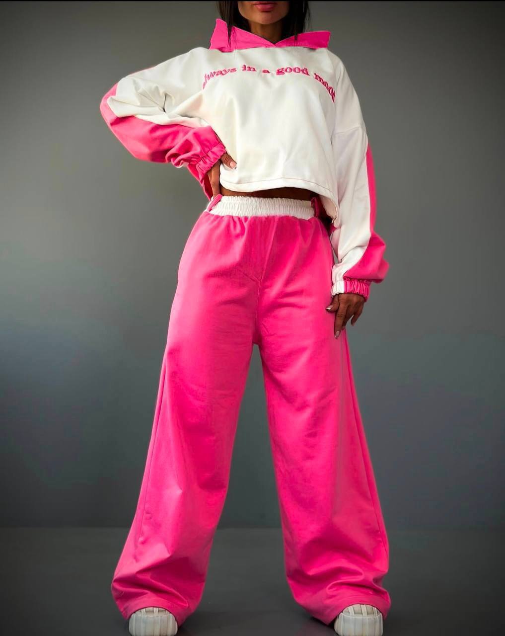 سوییشرت کلاه دار و شلوار بگ/ فری سایز/ از سایز ۳۶ تا ۴۴/ موجود در چهار رنگ